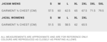 • XXS, XS, Small, Medium, Large, X Large, 2X Large, 3X Large, 4X Large, 5X Large, 7XL